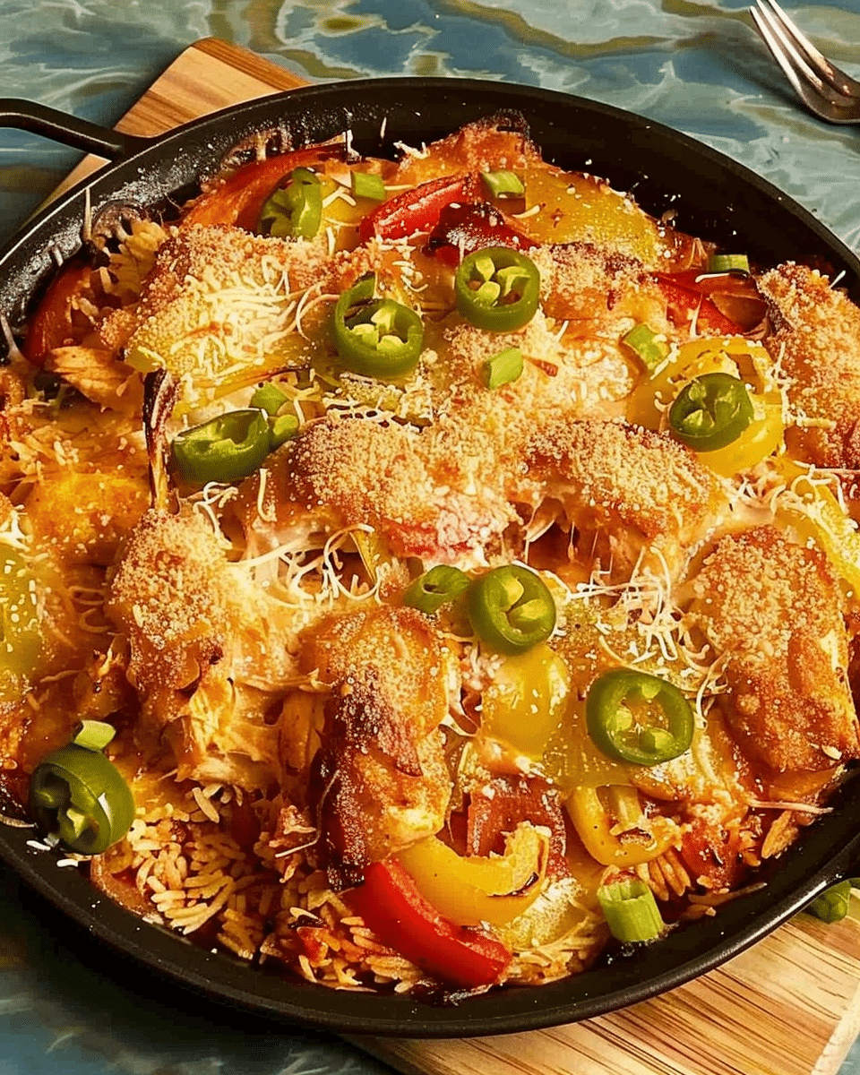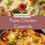 This Fajita Chicken Casserole is a cheesy, oven-baked dish combining seasoned chicken, bell peppers, onions, rice, and a creamy broth for a hearty, all-in-one meal that captures the flavors of classic fajitas with minimal prep.