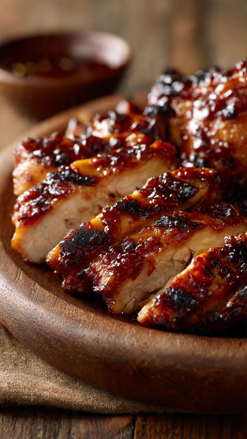 Baste chicken with sauce and continue grilling over indirect heat, turning until internal temp reaches 165°F (74°C), about 7–10 minutes more. Transfer to a platter and drizzle with remaining sauce before serving.