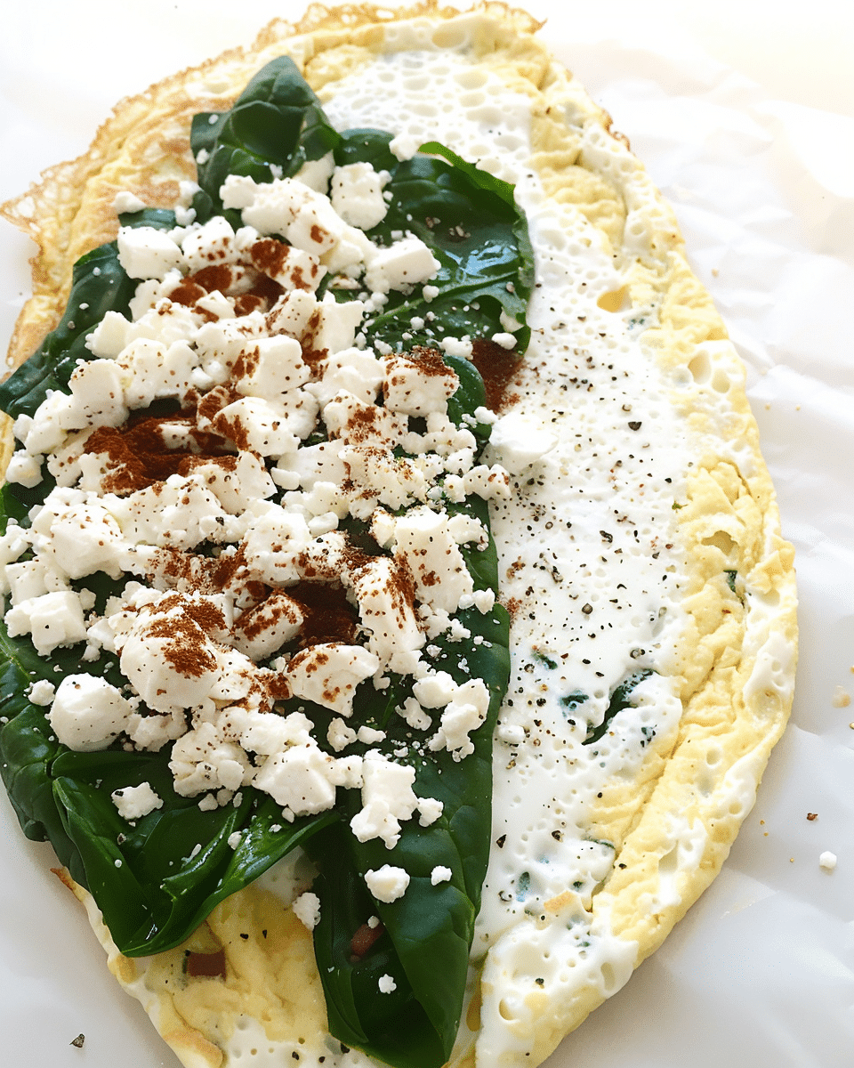 A light and protein-rich omelette made with fluffy egg whites, sautéed spinach, sun-dried tomatoes, and crumbled feta. This 10-minute breakfast is flavorful, satisfying, and perfect for a healthy start to the day.