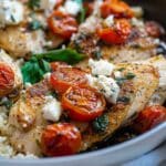 Return chicken to skillet and nestle into the tomato mixture. Sprinkle feta over top.