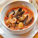 This French Bouillabaisse is a comforting and flavorful Provençal seafood soup made with fresh fish, shellfish, aromatic vegetables, and fragrant saffron. It feels special enough for guests yet simple enough to prepare at home, delivering a rich Mediterranean taste in every spoonful.