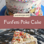 A festive and colorful dessert, Funfetti Poke Cake is made with fluffy white or yellow cake infused with vanilla pudding, topped with whipped topping and rainbow sprinkles. Perfect for birthdays, potlucks, or any celebration, it’s simple, delicious, and loved by all ages.