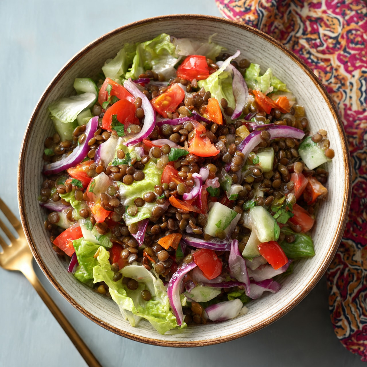 This salad is quick to assemble, requires no cooking if you use pre-cooked lentils, and is packed with plant-based protein and fiber. The contrast between hearty lentils and crisp lettuce creates a unique texture that keeps the dish interesting. It’s naturally vegan, gluten-free, free from processed ingredients, and light yet filling. Best of all, it’s served cold, making it perfect for warm-weather meals.