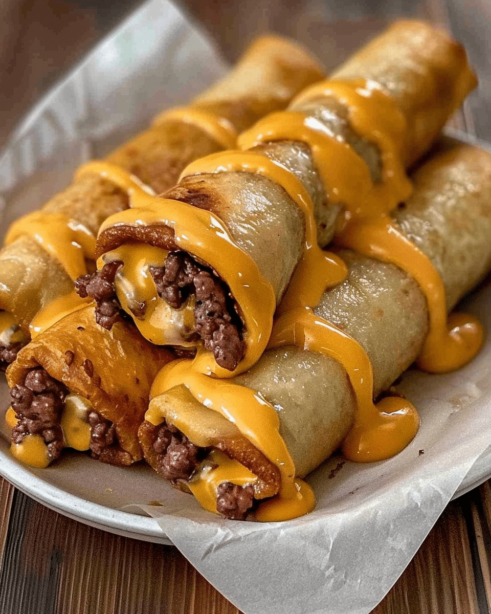 These rollups combine familiar comfort-food flavours with fun, handheld convenience. The buttery, flaky wrap pairs wonderfully with the savoury seasoned beef and gooey cheddar inside. It’s quick to put together, makes a strong impression, and fits perfectly for a busy weeknight or casual get-together.