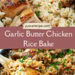 This recipe is a true weeknight hero. It delivers the deep, savory flavors of roasted chicken with the creamy satisfaction of perfectly cooked rice—all in one skillet. The garlic butter base infuses every grain of rice and piece of chicken with rich flavor, while oven-baking ensures a tender, juicy finish. It’s simple enough for a quick family dinner yet elegant enough to serve guests.