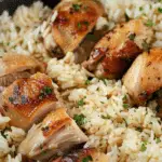Garlic Butter Chicken and Rice is a cozy one-pan meal featuring seasoned chicken thighs baked over tender, garlic-infused rice. It’s rich, savory, and perfect for a satisfying weeknight dinner with minimal cleanup.
