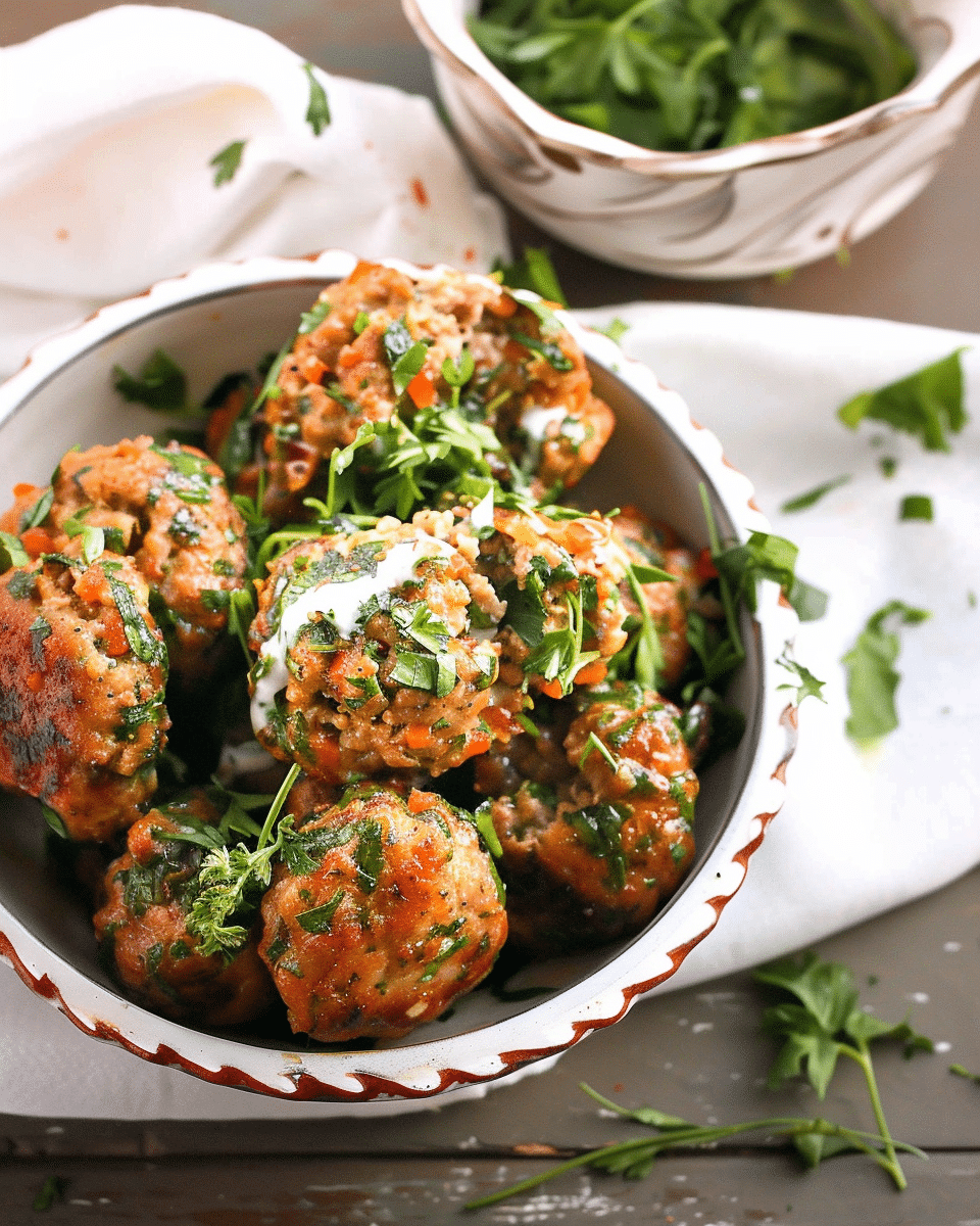 Tender, juicy turkey meatballs infused with garlic and fresh herbs, baked to perfection and served with a creamy lemon herb sauce. Quick to prepare, versatile, and full of vibrant flavor.