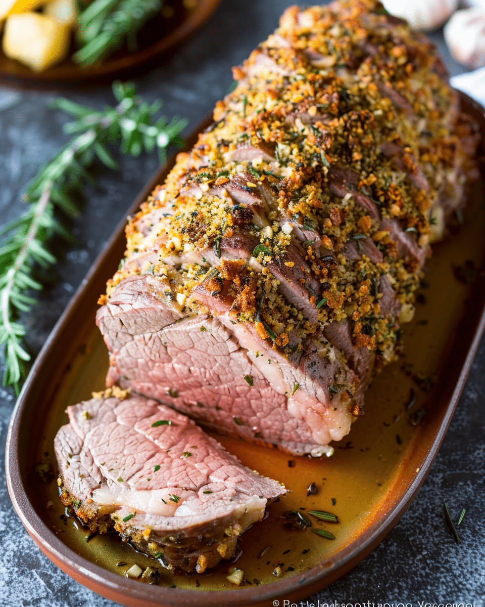 This Garlic Herb-Crusted Roast Beef is a savory, aromatic dish that transforms a simple cut of beef into a flavorful centerpiece. Coated in a blend of fresh herbs, garlic, and crushed peppercorns, the roast is oven-baked to juicy perfection with a crisp, herby crust. Perfect for holidays, special occasions, or cozy Sunday dinners, this recipe is both elegant and easy to prepare.