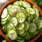This German cucumber salad is a cool, creamy, and tangy side dish made with thinly sliced cucumbers, onions, and a dill-infused sour cream or cream-based dressing. It’s refreshing, simple to prepare, and perfect for warm-weather meals or hearty comfort dishes.