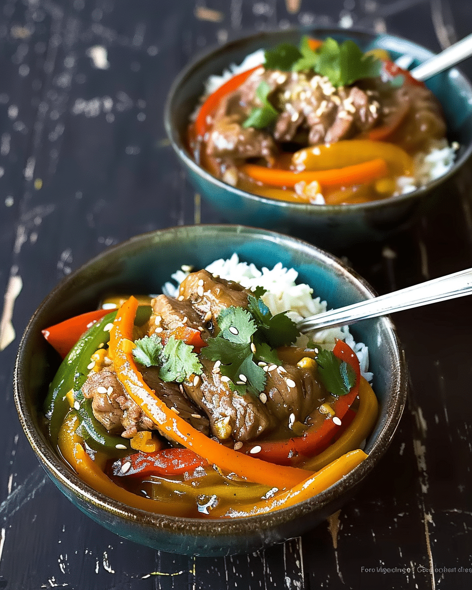 I store leftovers in an airtight container in the refrigerator for up to 3 days. When reheating, I warm it gently in a pan over medium heat with a splash of water or broth to keep it moist. Microwaving also works, but I prefer the stove to maintain texture. It’s not ideal for freezing due to the sauce and delicate texture of the beef.