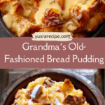 Grandma’s Old‑Fashioned Bread Pudding with Vanilla Sauce is a comforting, nostalgic dessert that transforms simple ingredients into something magical. Whether you’re serving it for a family dinner, holiday gathering, or as a cozy treat, it’s sure to win hearts (and taste buds). With its easy preparation, flexible variations, and that luscious sauce, it’s a dessert that never goes out of style.