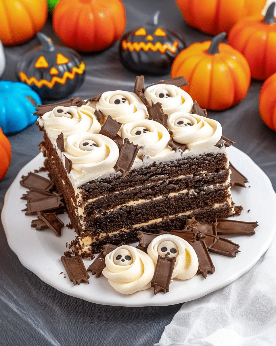 This cake captures the eerie fun of Halloween with layers of chocolate pudding, crushed “dirt” cookies, and playful tombstone and gummy worm decorations. It’s dramatic yet surprisingly easy to pull together when I want to delight guests without spending all day in the kitchen.