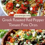 Greek Roasted Red Pepper Tomato Feta Orzo is a simple yet elegant dish that brings Mediterranean comfort straight to your table. With its balance of creamy, tangy, and savory flavors, it’s a recipe you’ll want to make again and again, whether for a quick family meal or a special gathering.