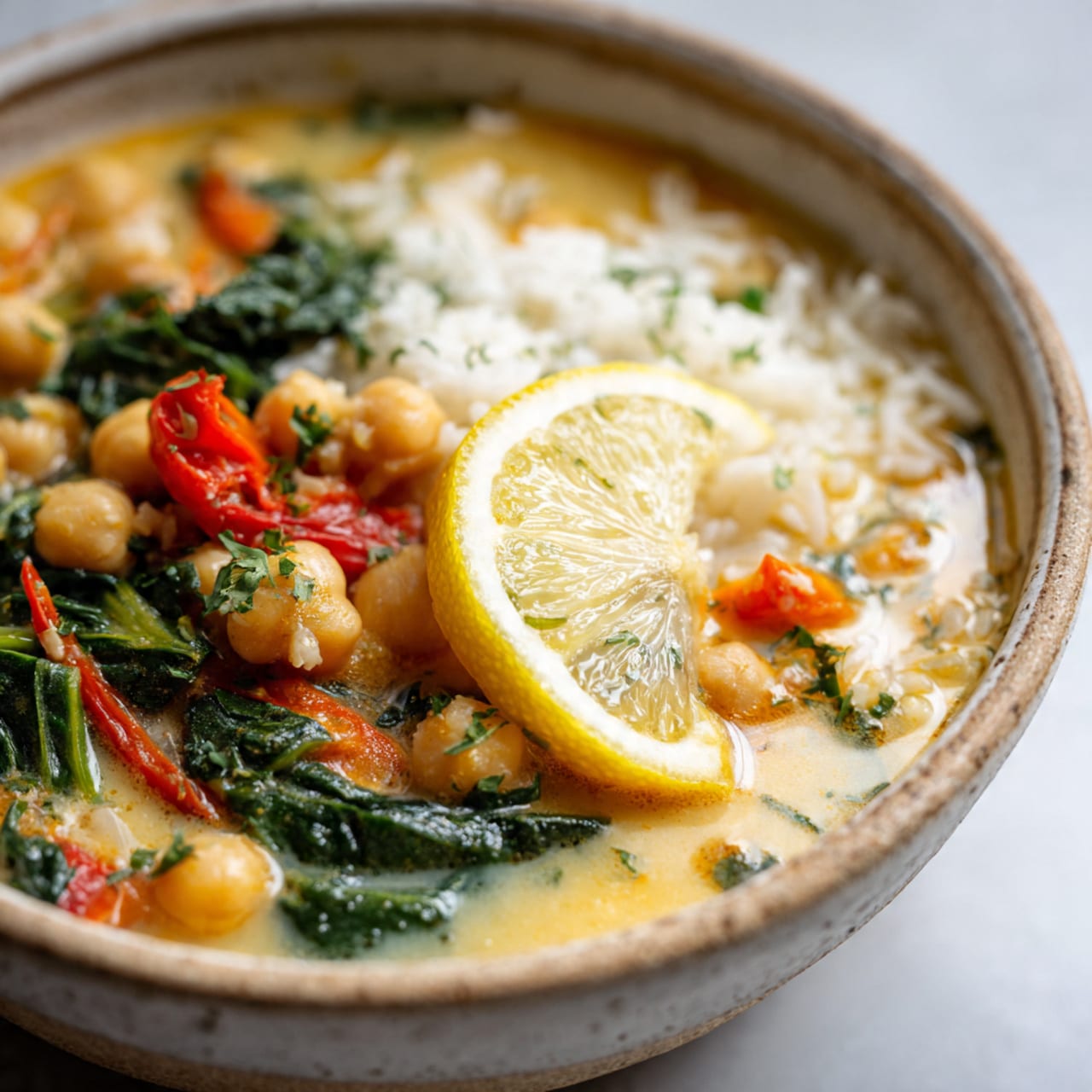 This Greek-style lemon chickpea stew is a comforting one-pot meal that balances creamy richness with fresh, citrusy brightness. Tender chickpeas simmer in a velvety coconut-based broth, finished with lemon zest, juice, and leafy greens for a nourishing dish that feels cozy yet light. Perfect for busy weeknights, it delivers Mediterranean-inspired flavors using simple pantry staples.