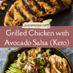 This grilled chicken with avocado salsa is a refreshing, nutritious, and flavorful meal that comes together quickly and satisfies every time. With its citrusy marinade and creamy, vibrant salsa, it’s an easy dish you’ll return to again and again for weeknight dinners or healthy meal prep.