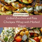 This Grilled Zucchini and Feta Chickpea Wrap with Herbed Yogurt combines smoky grilled zucchini, creamy herbed yogurt, seasoned chickpeas, and tangy feta in a wholesome whole-wheat wrap. It’s a Mediterranean-inspired, quick, and satisfying meal perfect for lunch or dinner.