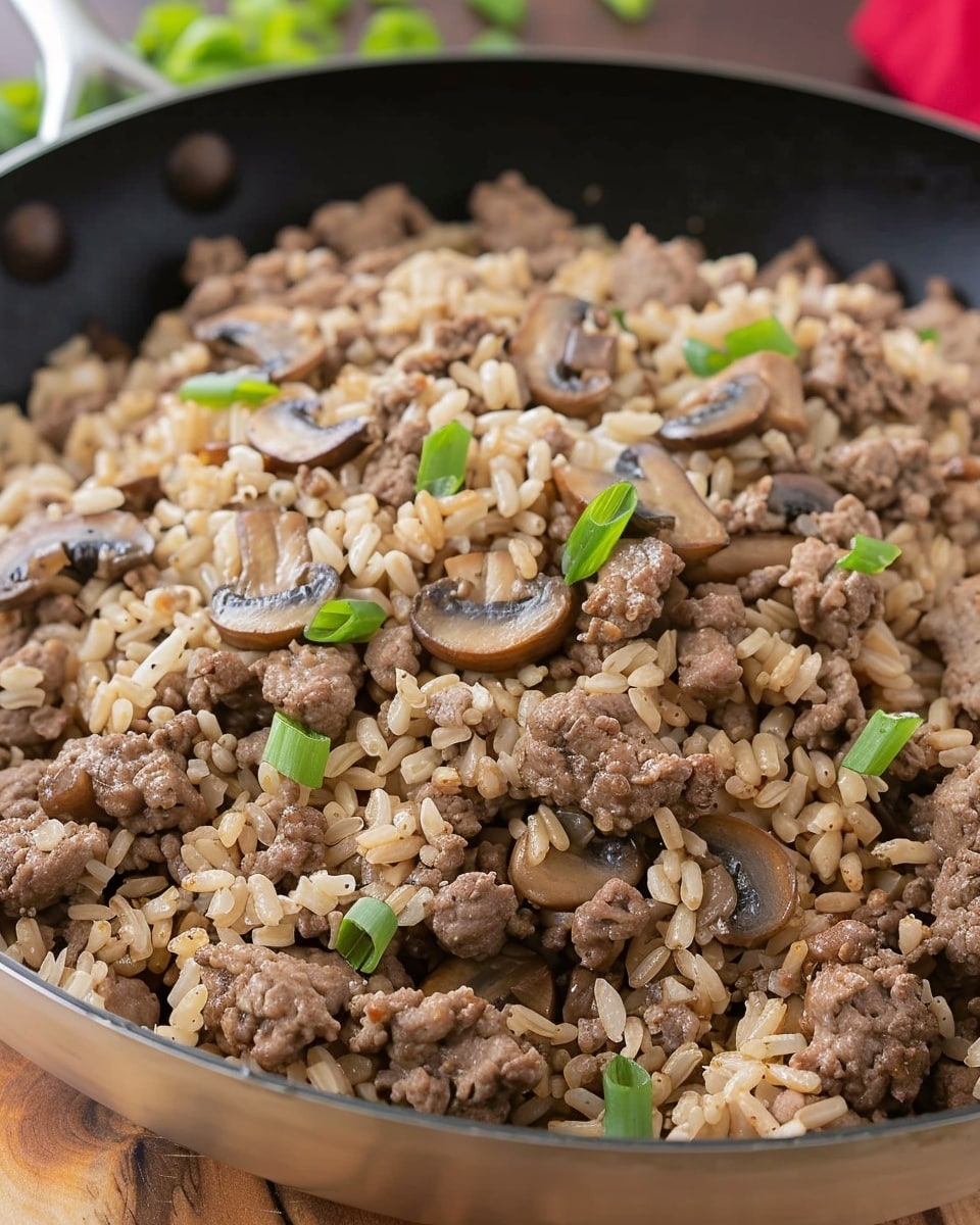 This recipe is ideal if you want a satisfying dinner without spending hours in the kitchen. The mushrooms add earthy flavor, the rice soaks up the savory juices, and the ground beef keeps it hearty. Everything cooks in one pan, meaning fewer dishes and more time to relax. It’s versatile, simple, and can be adjusted with different types of mushrooms or rice depending on your pantry.