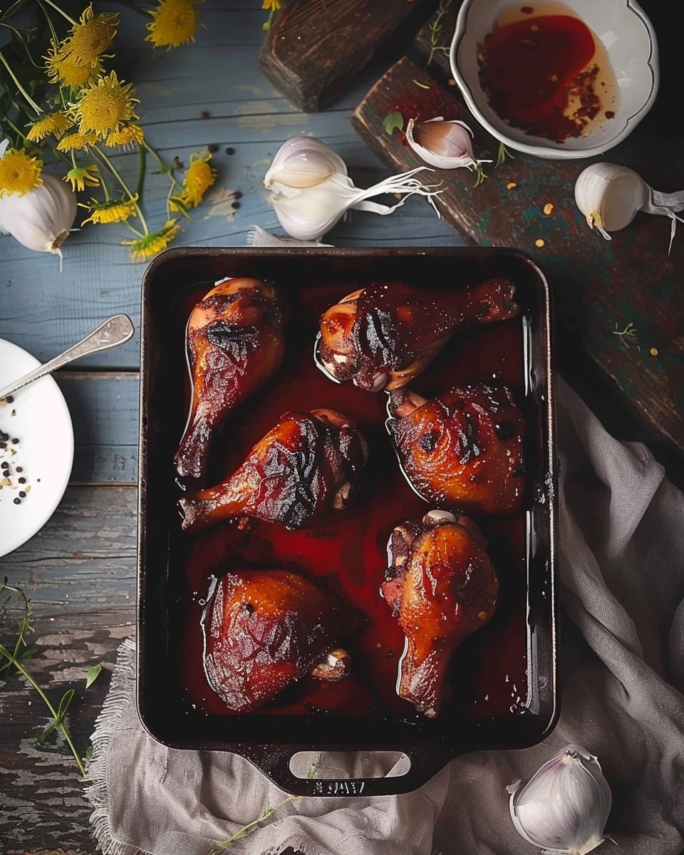 Transfer marinated chicken and all marinade to a 9×13-inch baking dish, spreading evenly. Bake for 35–40 minutes, or until the internal temperature reaches 165°F (74°C) and the top is caramelized.