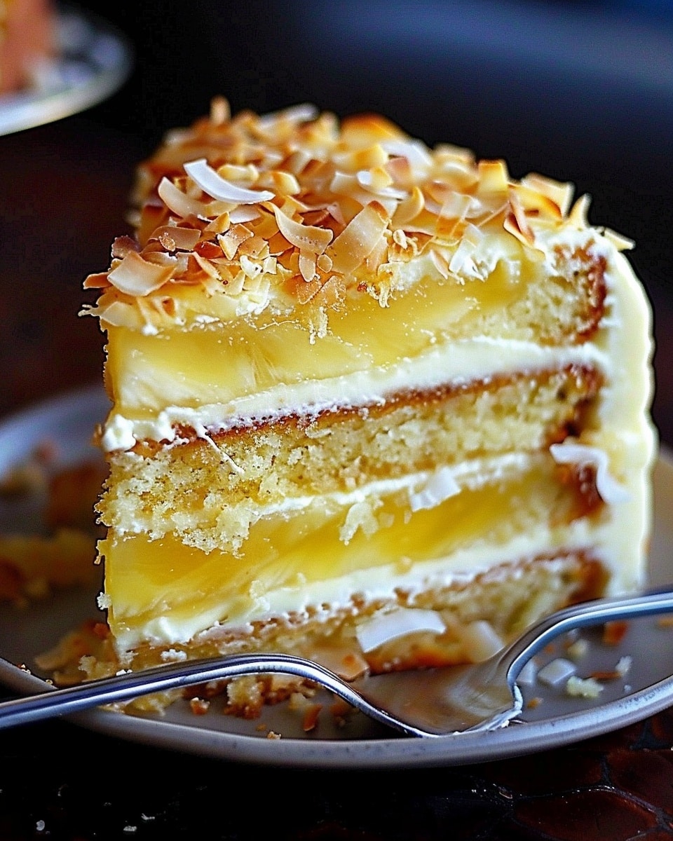 This cake stands out for its incredibly moist texture and balanced sweetness. The combination of coconut milk and crushed pineapple ensures each layer is tender and flavorful. The homemade whipped cream frosting adds a light and airy finish that complements the richness of the cake without being overly heavy. It’s also a visually appealing dessert with its layered presentation and toasted coconut topping.