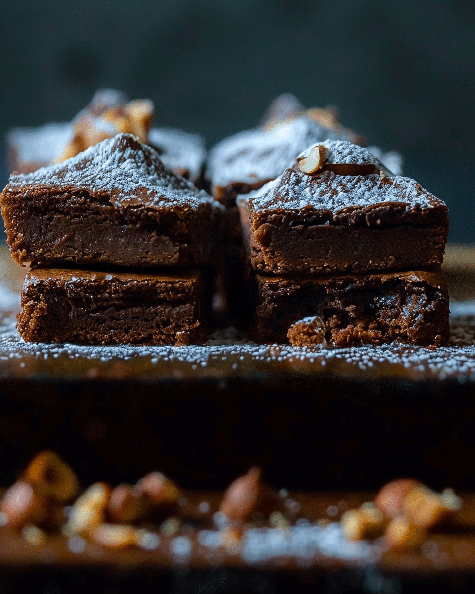 Fudgy, bite-sized brownie treats made with rich chocolate, hazelnut flour, and a hint of caramel. These indulgent mini desserts have a crackly top and chewy center — perfect for snacking, sharing, or special occasions.