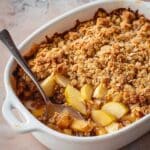 A cozy, warm apple crisp made with naturally sweetened apples and a crunchy almond-coconut topping. It’s gluten-free, dairy-free, and made without butter, making it a wholesome dessert that still feels classic and comforting.