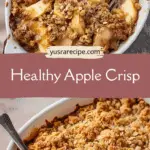 Healthy Apple Crisp is a cozy, warm baked dessert with tender cinnamon-nutmeg apples sweetened with maple syrup and topped with a crunchy almond-coconut crumble that’s naturally gluten-free and dairy-free.