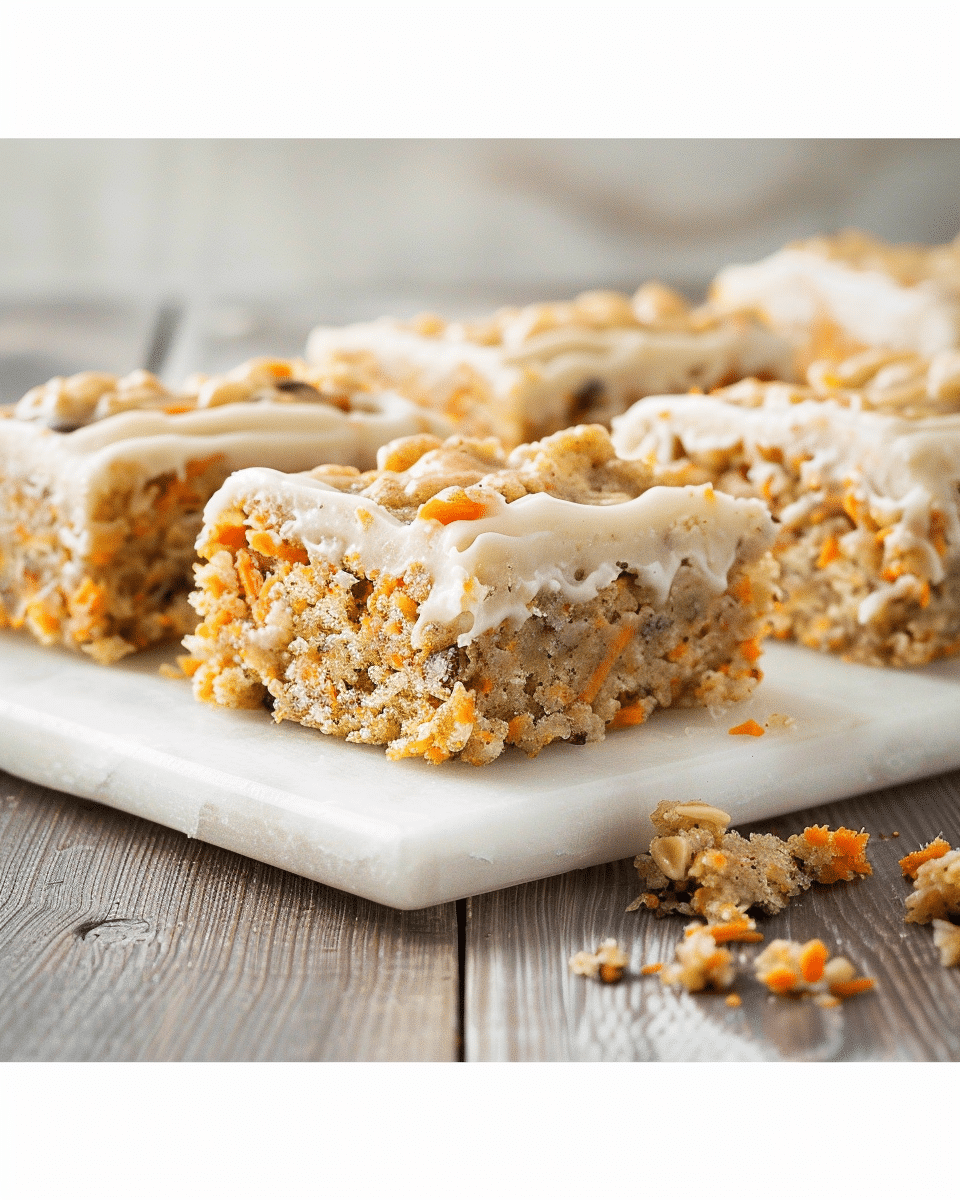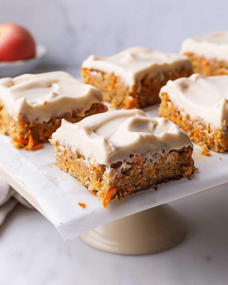 A wholesome, gluten-free spin on carrot cake in bar form — sweetened naturally and topped with a light cream cheese frosting.
