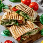 These Healthy Folded Pesto Chicken Tortilla Wraps are a quick and satisfying meal packed with juicy chicken, melty cheese, fresh spinach, and flavorful basil pesto. Crispy on the outside and gooey inside, they’re ready in just 10 minutes — perfect for lunch, dinner, or meal prep.