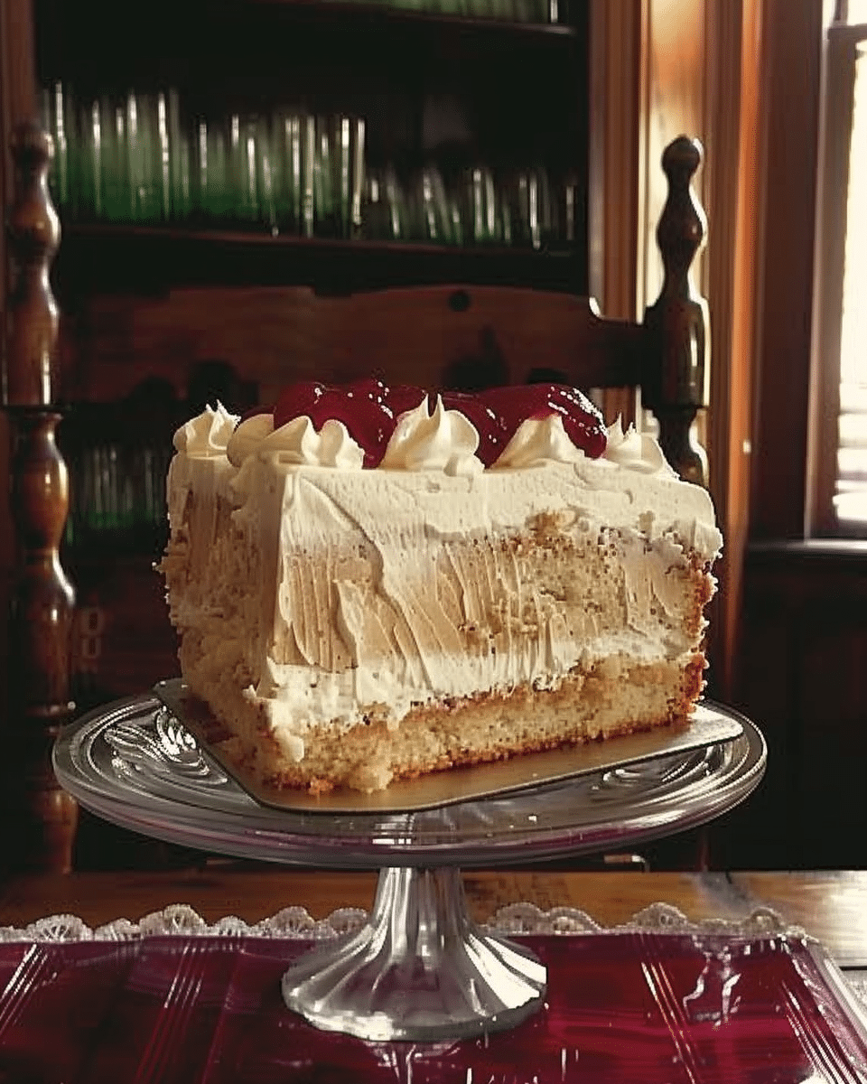 A delightfully light, no-bake dessert featuring layers of airy cake, creamy pudding, juicy fruit filling and a cool whipped topping—an ideal treat for potlucks or summer evenings.