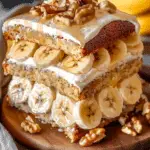 This cake captures the comforting essence of home baking while remaining elegant and irresistible. The banana base keeps the cake incredibly moist, while the walnuts add a delightful crunch. The light cream cheese frosting complements the cake perfectly without being overly sweet. It’s simple enough for beginner bakers yet special enough to impress guests at any occasion.