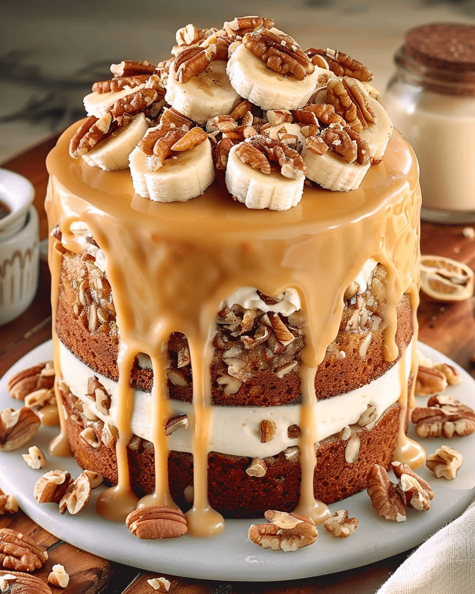 This Heavenly Banana Walnut Cream Cake is a moist and fluffy banana cake layered with crunchy walnuts and topped with a light, creamy frosting. It’s a comforting dessert that combines the richness of cream with the natural sweetness of ripe bananas — perfect for any occasion.