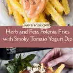 Crispy-on-the-outside, tender-on-the-inside polenta fries flavored with fresh herbs and feta cheese, served with a creamy smoky tomato yogurt dip for a comforting yet elegant appetizer or side.
