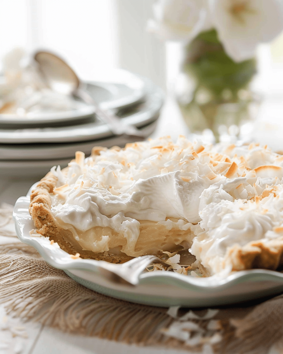 I love how this pie balances a crisp crust with a smooth, coconut-forward filling and soft, cloudlike topping. I prep the crust and even the custard in advance, then finish with fresh whipped cream right before serving. If I’m baking for coconut fans—or anyone who adores cool, creamy pies—this is the showstopper I reach for every time.