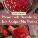 This easy, small-batch homemade strawberry jam is made with just three ingredients—fresh strawberries, sugar, and lemon juice—without any added pectin. It’s glossy, flavorful, and perfect for spreading or gifting.