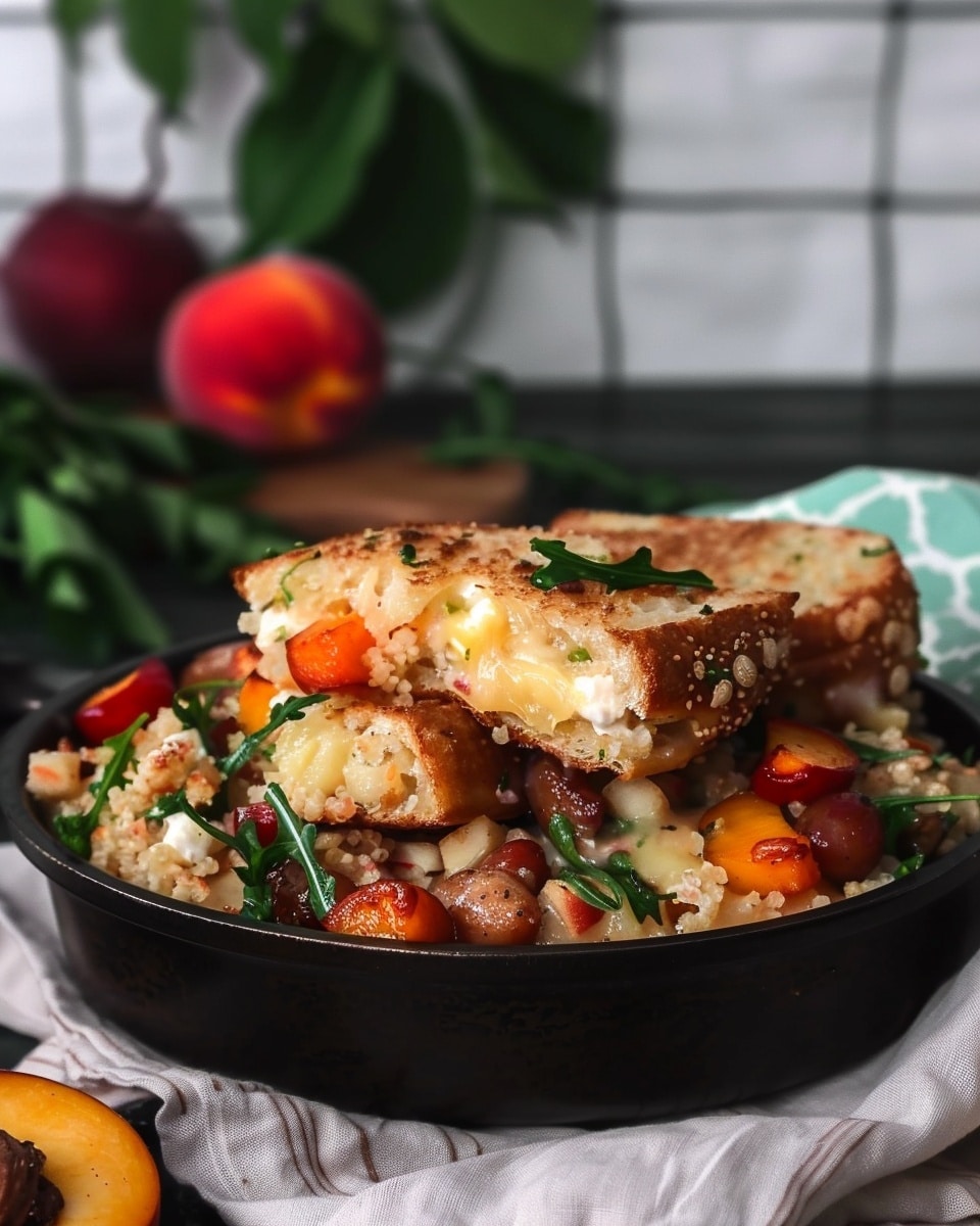 A sweet and savory grilled sandwich featuring juicy peaches, creamy ricotta, sharp white cheddar, and golden buttery sourdough. This easy, gourmet-style sandwich is perfect for a quick lunch or weekend treat.