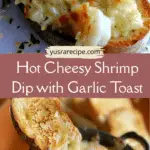 Hot Cheesy Shrimp Dip with Garlic Toast is a rich, creamy appetizer featuring tender shrimp, melted cheeses, and a touch of garlic. Baked until bubbly and golden, it’s perfect for dipping with crispy garlic toast.