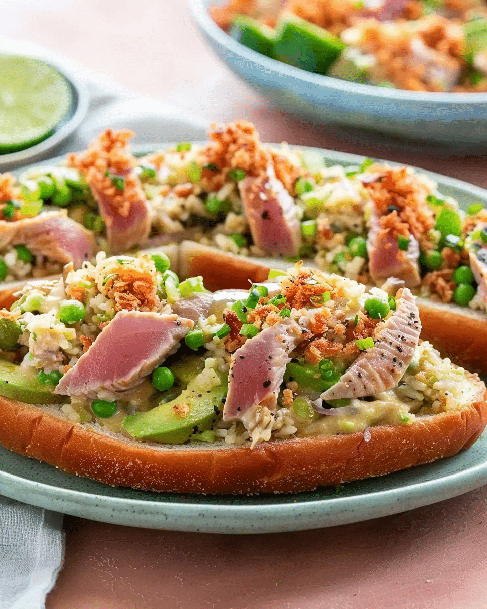 A warm, crispy, and cheesy Tuna Melt made by layering creamy tuna salad between toasted bread slices and melting cheese on top—comfort food that’s easy and satisfying.