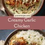 Creamy garlic chicken is a one-pan dish made with golden pan-seared chicken cutlets smothered in a rich, garlicky cream sauce. It’s quick, comforting, and ideal for weeknight dinners or special meals at home.