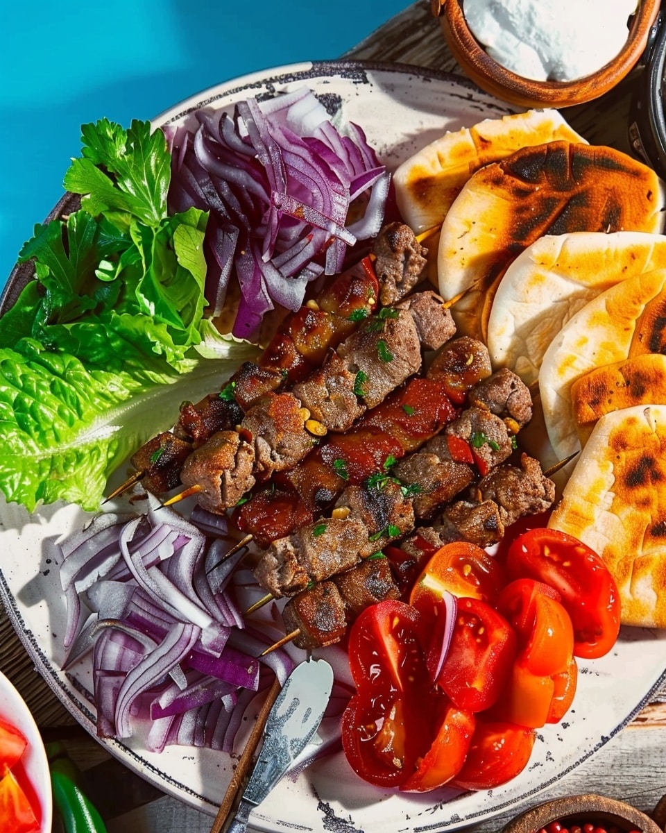 Iskender kebab is a beloved Turkish dish known for its rich layers of flavor and satisfying textures. Crispy toasted bread cubes are topped with tender slices of seasoned beef, a warm tomato sauce, and finished with a drizzle of melted butter. Served with grilled vegetables and creamy yogurt, this dish creates a comforting, restaurant-style meal that can easily be prepared at home.