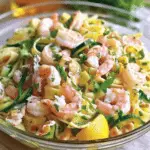 This creamy seafood pasta combines tender shrimp, sweet crab, and crisp vegetables in a bright, lemony dressing. It’s light enough for lunch, satisfying enough for dinner, and especially nice served chilled when you want something refreshing but filling.