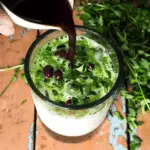 Finally, I pour the matcha mixture on top. I like to serve it as-is for a beautiful layered effect or stir gently to mix all the flavors before drinking.