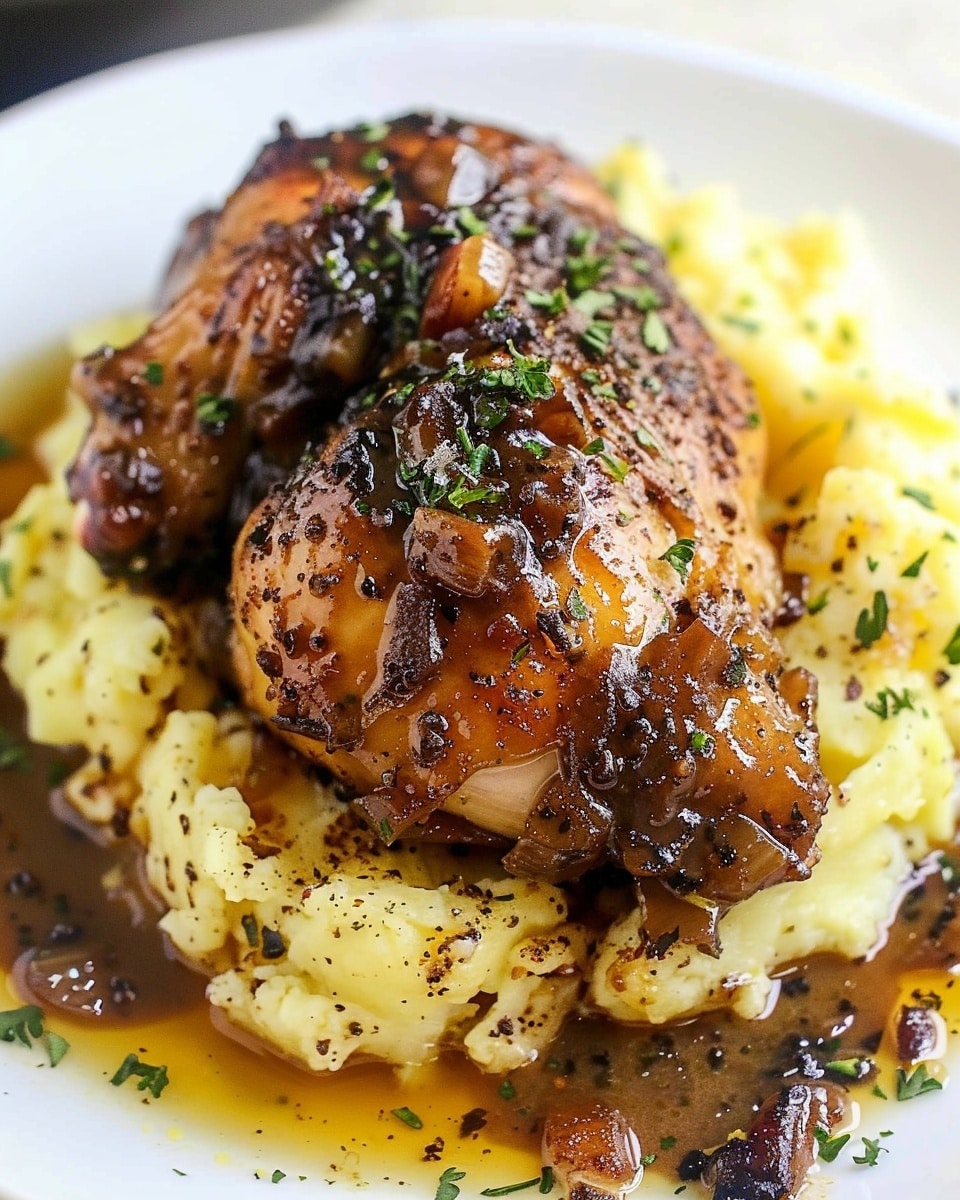To reheat, place the chicken and gravy in a pot over medium-low heat, adding a splash of water or broth if the sauce has thickened too much. You can also reheat it in the microwave in short intervals, stirring in between to ensure even heating.