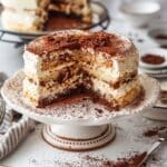 This Italian Tiramisu Cake brings together the classic flavors of tiramisu in the form of a soft, layered cake. Light sponge layers are soaked with espresso and paired with a smooth mascarpone cream, then finished with a delicate cocoa topping for an elegant and comforting dessert.