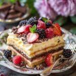 Italian Zuppa Inglese is a timeless layered dessert that brings together delicate sponge cake, silky vanilla custard, rich chocolate custard, and a touch of fruit and chocolate on top. It is creamy, comforting, and elegant, making it perfect for celebrations or a refined family dessert.