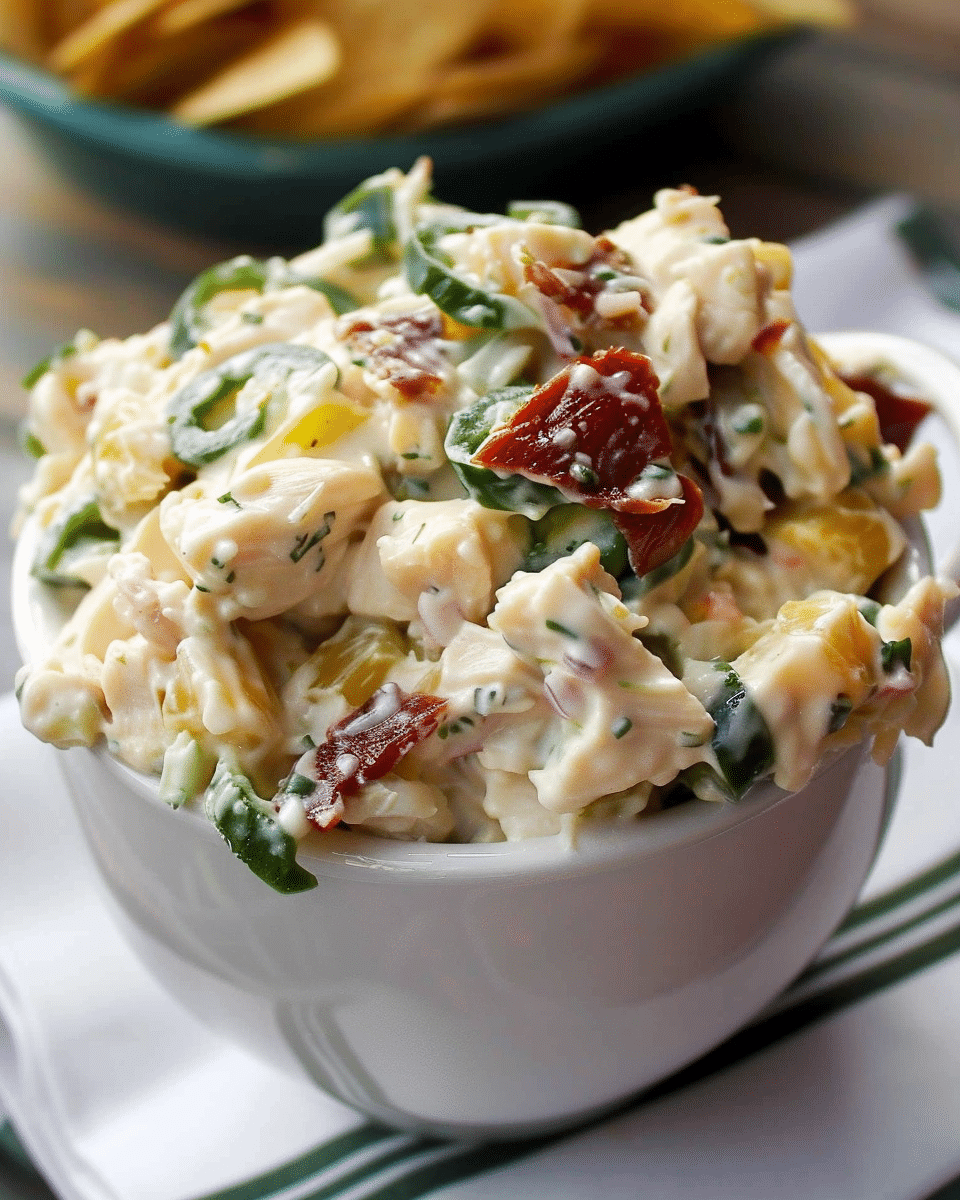 This creamy, slightly spicy chicken salad brings all the flavors you love from jalapeño poppers into an easy, satisfying dish. It’s rich, tangy, and packed with texture, making it perfect for sandwiches, wraps, or light meals.