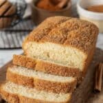 It is lightly sweet with a warm cinnamon flavor, so it sits nicely between a breakfast loaf and a snack cake.
