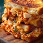 This sandwich delivers a delicious balance of creamy, cheesy richness and spicy, tangy lift from the kimchi. It’s incredibly quick to make, uses simple ingredients, and turns leftover chicken into a satisfying meal. The double cheese layer melts beautifully, creating a gooey center that pairs perfectly with the crisp toasted bread. Ideal for lunch, a light dinner, or a gourmet snack.
