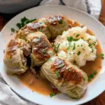 These classic German stuffed cabbage rolls are a comforting, hearty dish made with tender cabbage leaves wrapped around a seasoned beef filling and gently simmered in a rich, creamy broth-based sauce. Cozy, satisfying, and perfect for family dinners, this dish delivers traditional flavor without being overly complicated.
