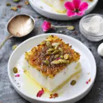 Layali Lubnan, or Lebanese Nights, is a creamy semolina pudding infused with orange blossom water, topped with ashta cream, crushed pistachios, and sweet syrup. This elegant Middle Eastern dessert is simple yet festive, served chilled for a refreshing finish.