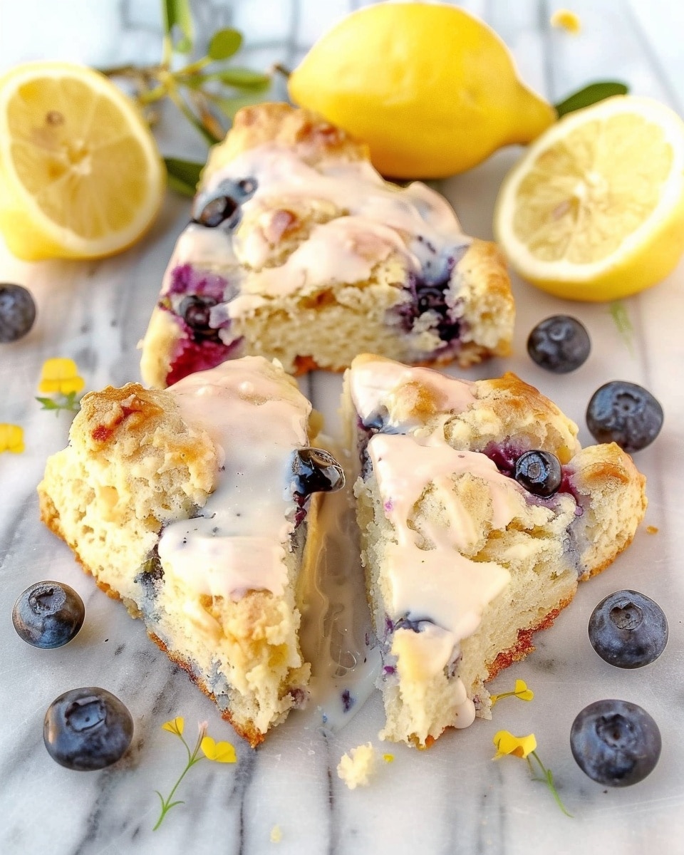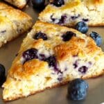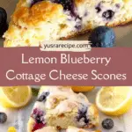 Lemon Blueberry Cottage Cheese Scones are tender, fluffy, and bursting with juicy blueberries and bright citrus flavor. Made with blended cottage cheese for added protein and moisture, they offer a wholesome twist on a classic bakery favorite.